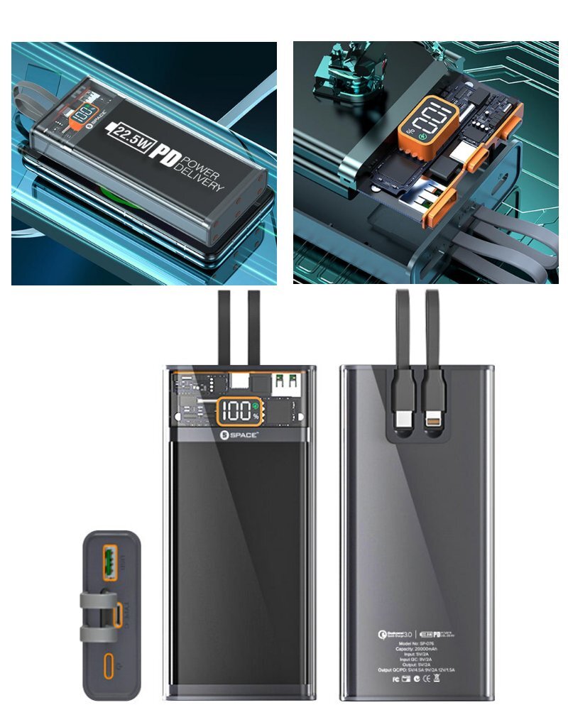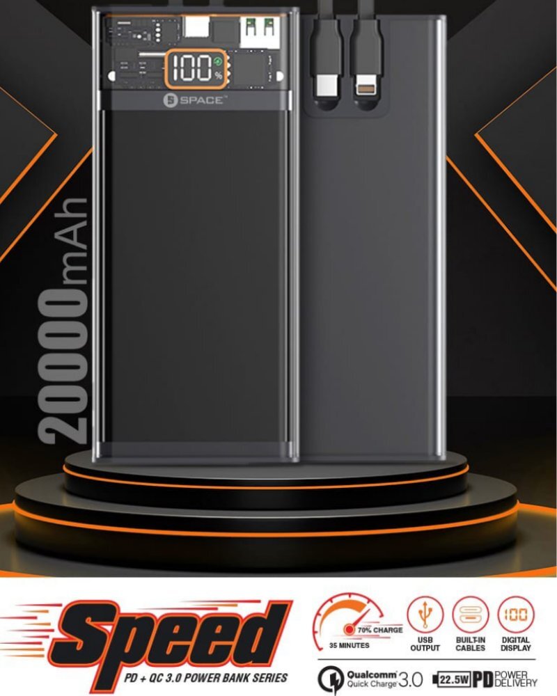 Speed PD +QC 3.0 Power Bank — a cutting-edge solution that combines sleek design with versatile functionality. This power bank is a true standout with its unique transparent casing, allowing you to marvel at the inner workings of advanced technology while on the go.